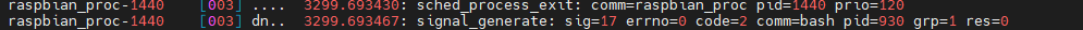 45898 raspbian_proc-1440 [003] .... 3299.693430: sched_process_exit: comm=raspbian_proc pid=1440 prio=120