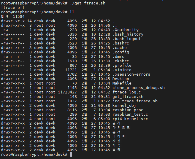 아래와 같이 실행하면 ftrace_log.c 가 생성 된것을 확인 할 수 있다.