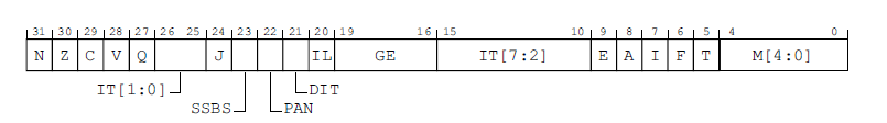 SPSR 을 자세히 보면 아래의 구조로 되어있다. 간단히 아래 의 역활을 하며, 자세한 내용은 스펙문서를 참고하면 된다.