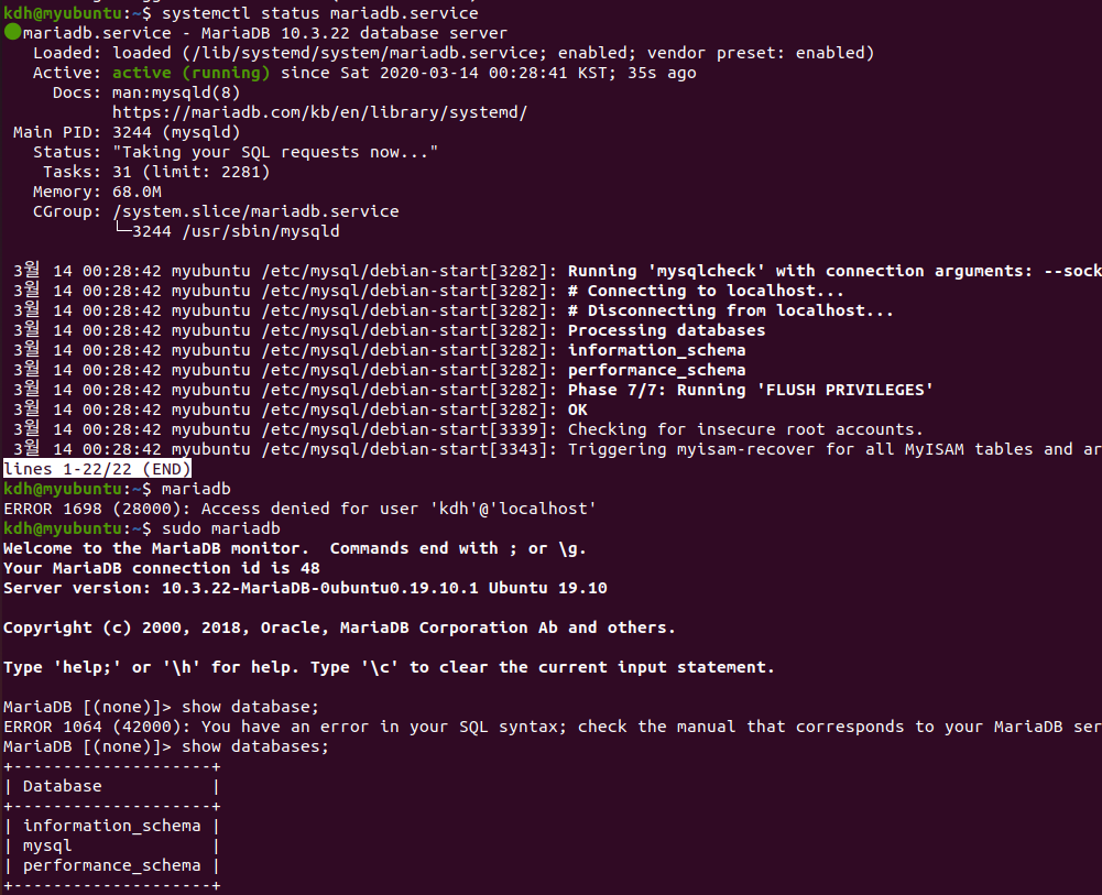 먼저 apt 를 사용하여 mariadb 패키지를 설치한다.
