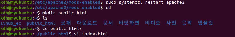 이번엔 고유 경로가 아닌, 사용자 홈 디렉터리에 html 파일을 생성하여준다.