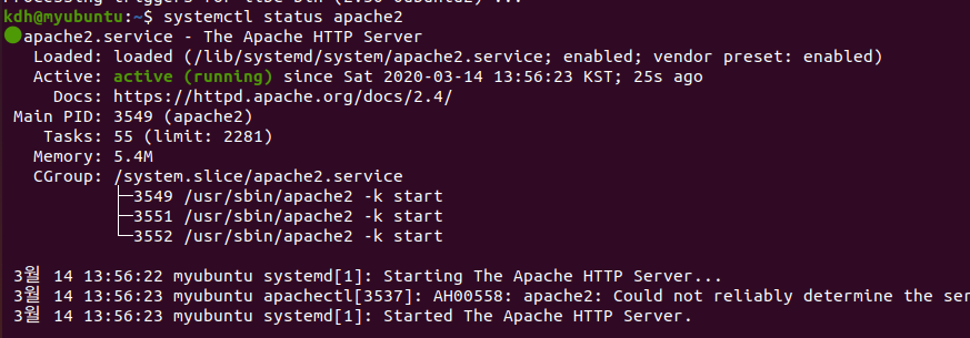 ps를 통해 보았을 때 apache가 여러 프로세스로 실행 중이며, 독자형 데몬이라는 것을 알 수 있다.