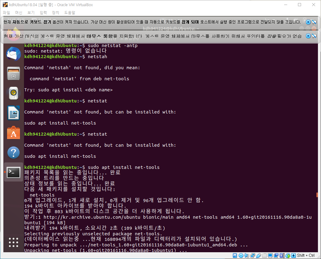 netstat 를 하려니 패키지가안되있구나.. 설치한지 얼마안되서