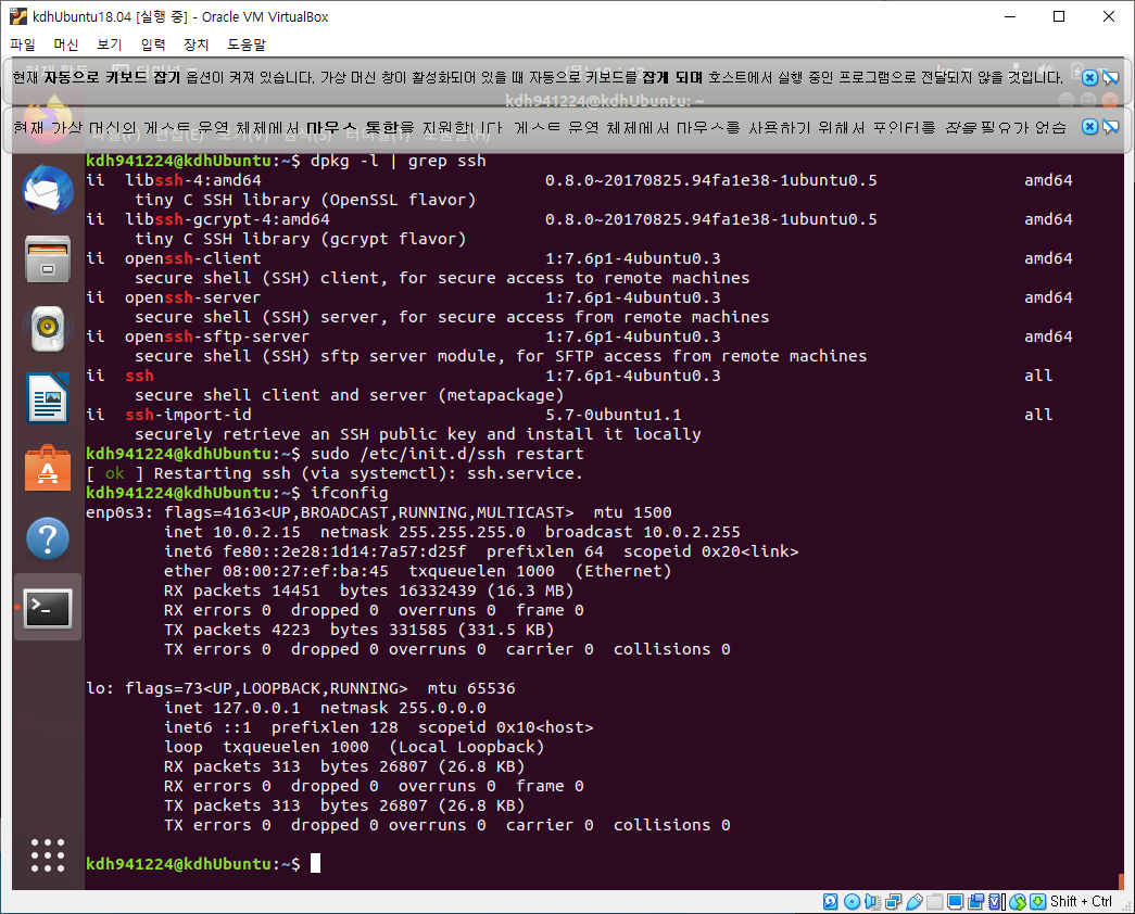 아래는 openssh-server 패키지를 install 한다.