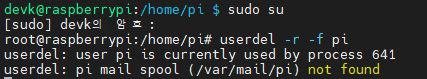 완전한 보안을 위해 pi 계정을 삭제한다.(삭제 전 아래 글 참고)