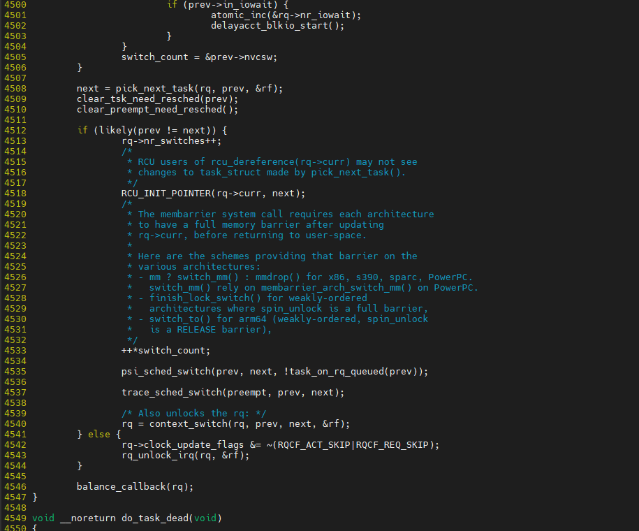 kernel/sched/core.c 4537 번에서 호출이 이루어지는 것을 확인 할 수 있다.